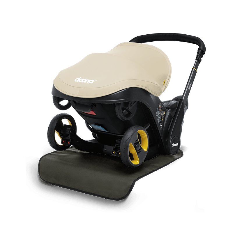 El protector de asiento de vehículo Doona está diseñado para proteger su vehículo de manchas y suciedad. Simplemente colóquelo debajo del asiento infantil para automóvil Doona o la base Doona. También se puede conectar a las cubiertas de ruedas Doona (se venden por separado).