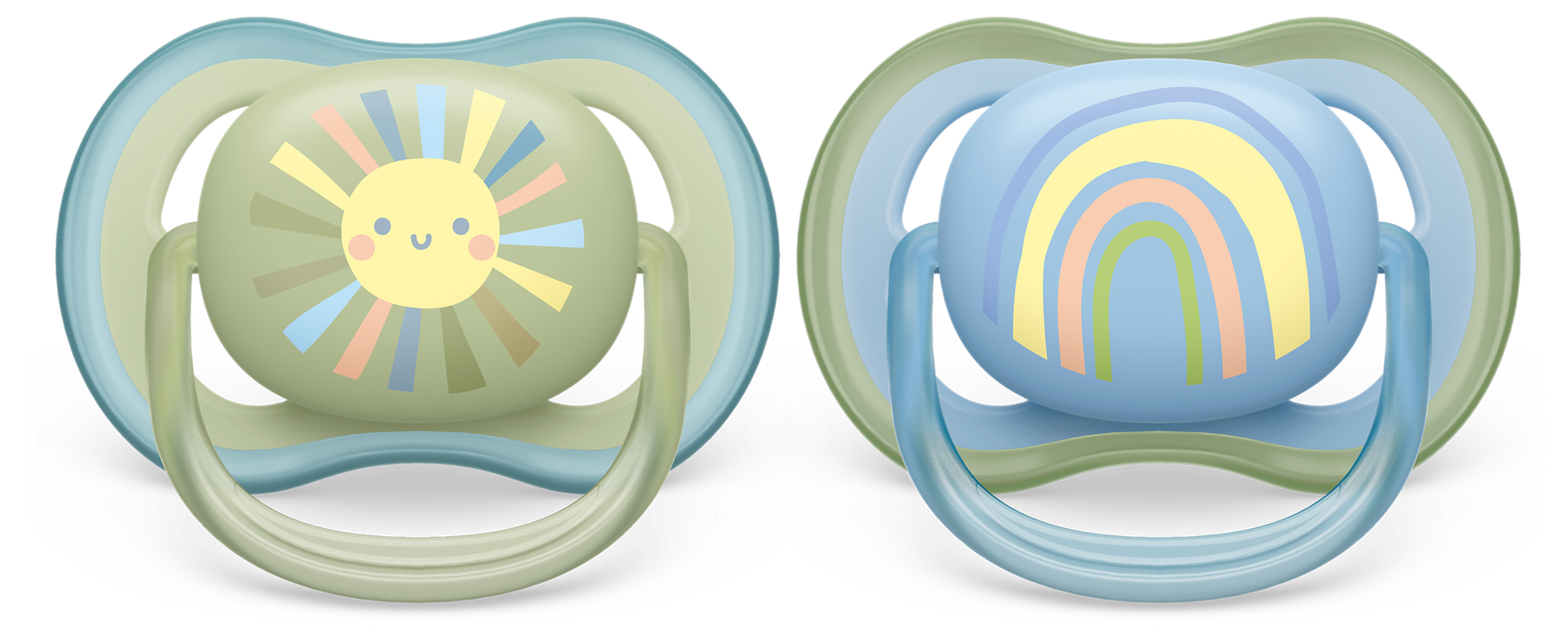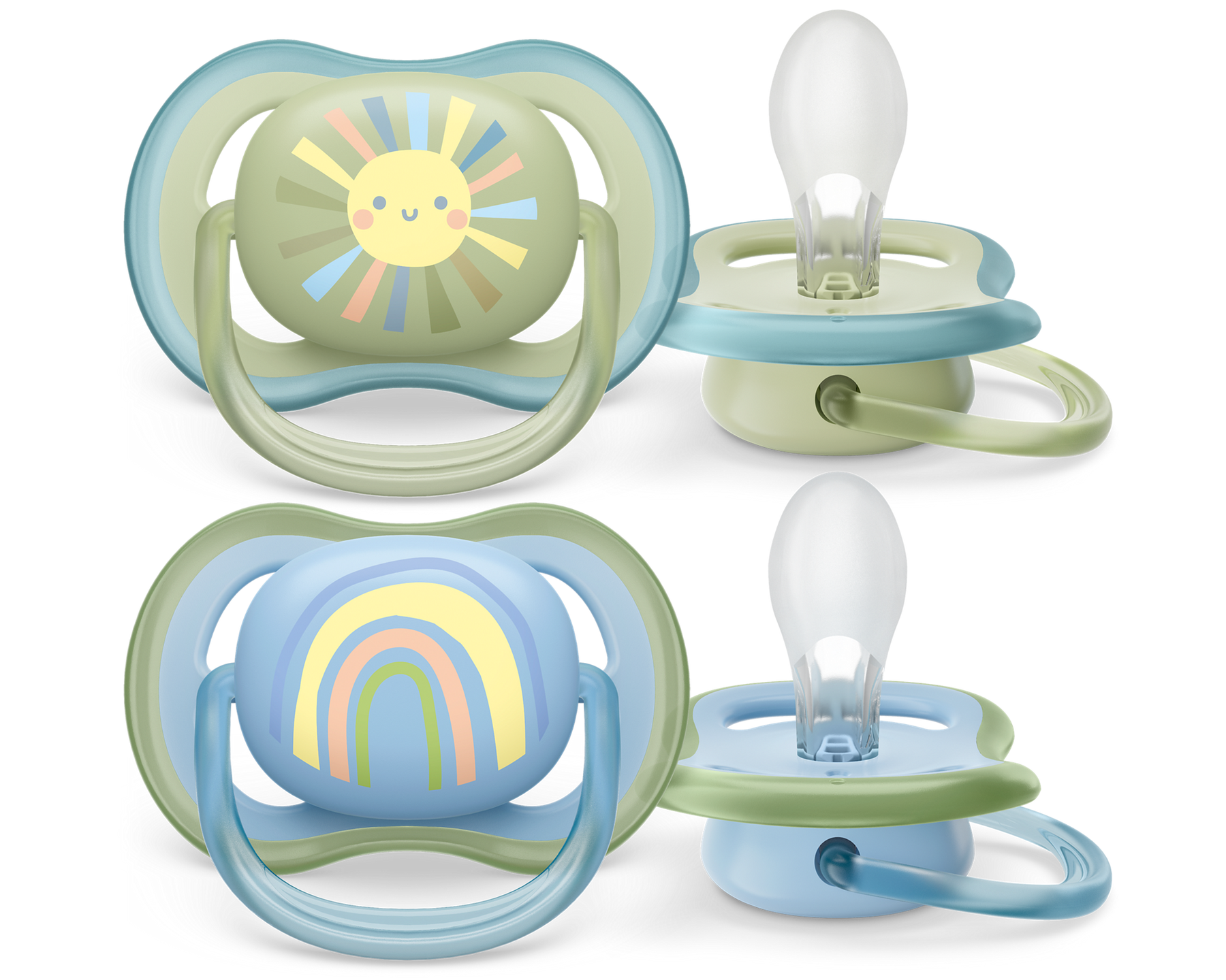 Tranquilidad con la comodidad del aire. El chupete ultra air de Philips Avent tiene orificios de aire extragrandes para mantener seca la piel de su bebé.