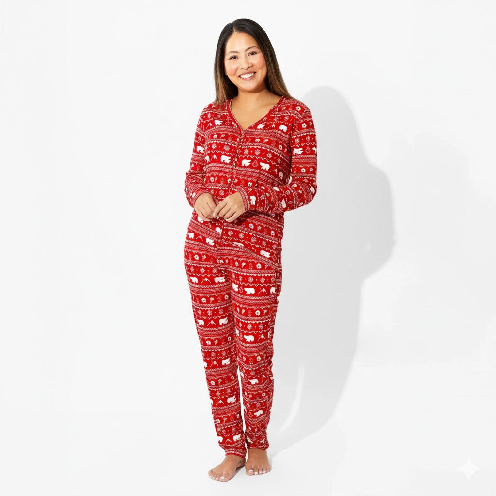 Bellabu Bear Dama Pijama Polar Isle Red Bamboo