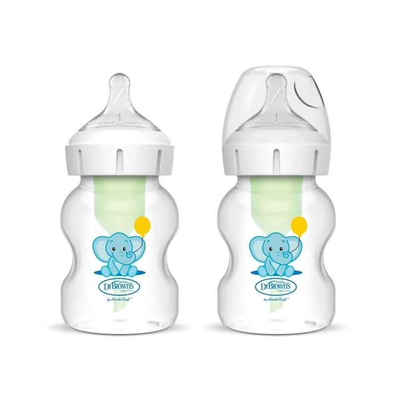 Dr. Brown Biberon Option + Anticolico 5Oz/250Ml 2Pzas Elefante