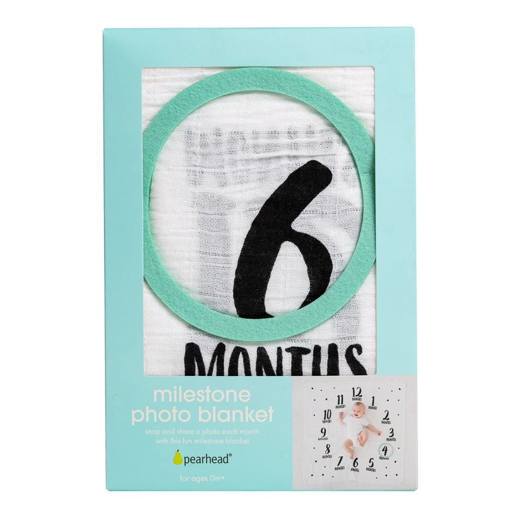 Manta clásica para hitos de bebé: Este accesorio de hitos de género neutro es el mejor regalo para baby shower. Esta manta de recuerdos atemporal permite capturar fácilmente el mes y la edad de tu bebé para verlo aprender y crecer.