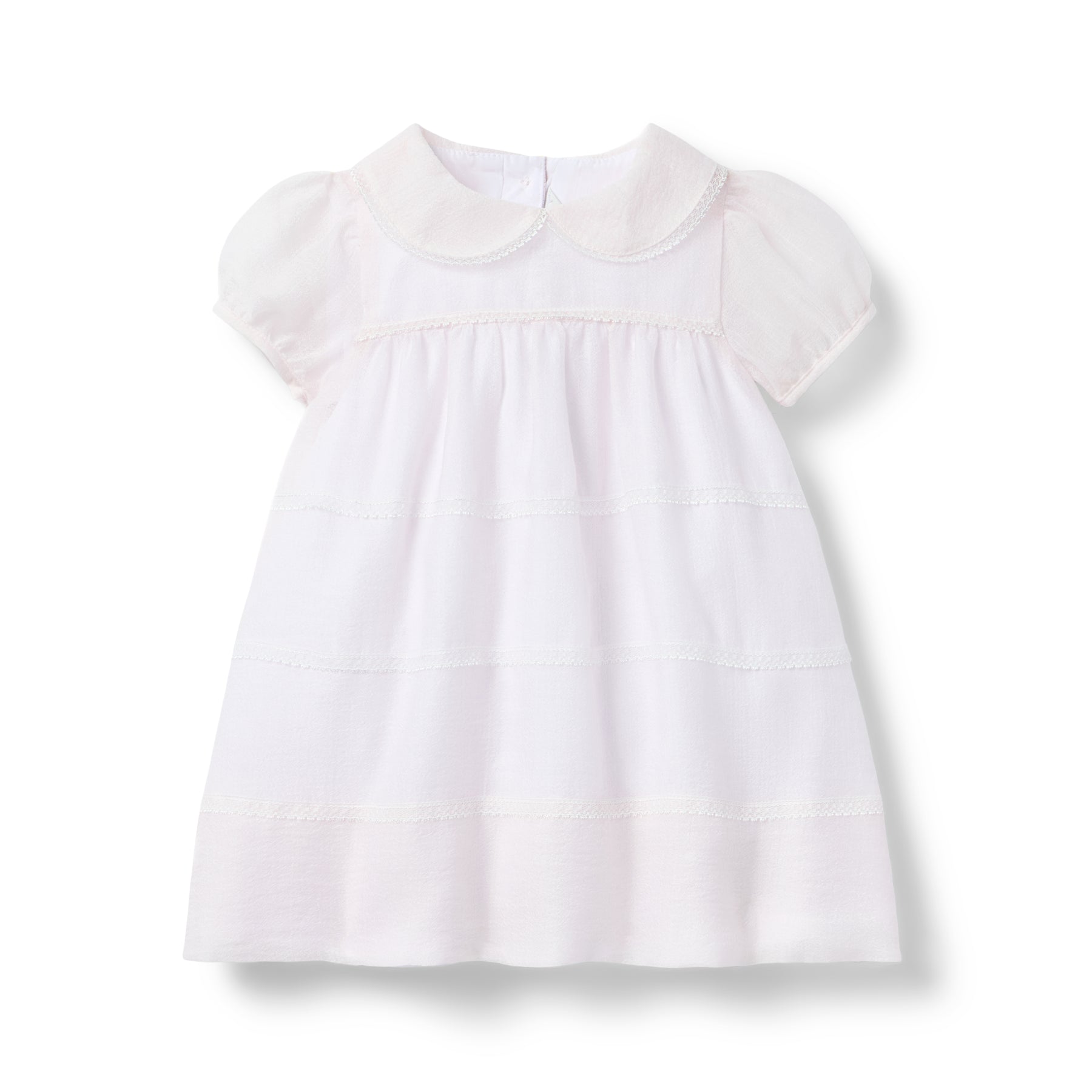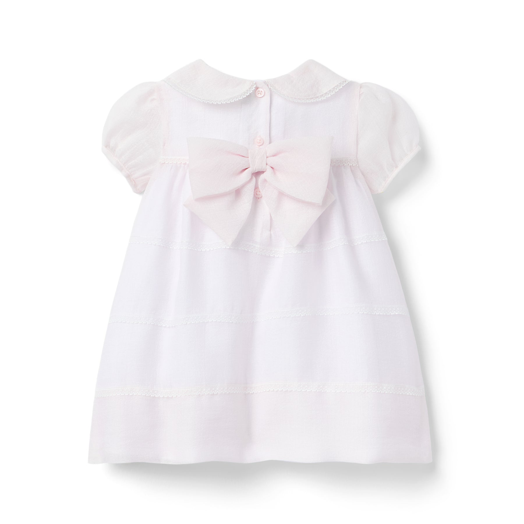 Las primeras ocasiones del bebé son aún más especiales con nuestro vestido de fiesta de organza con volantes. Con cuello Peter Pan, ribete de encaje y mangas abullonadas. Y, por supuesto, con un lazo en la espalda.