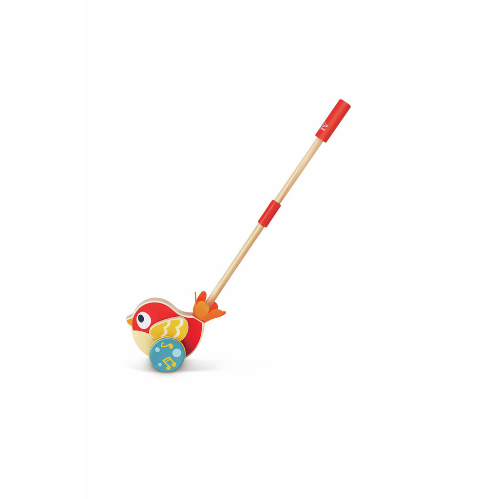 El pájaro Lilly canta alegremente y se mueve mientras los pequeños aprenden a caminar y mantener el equilibrio.