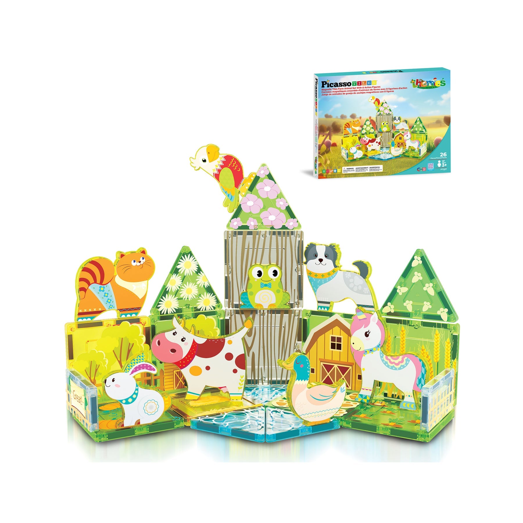 Picasso Tiles Granja Con Figuras De Acción De Animales 8Pcs