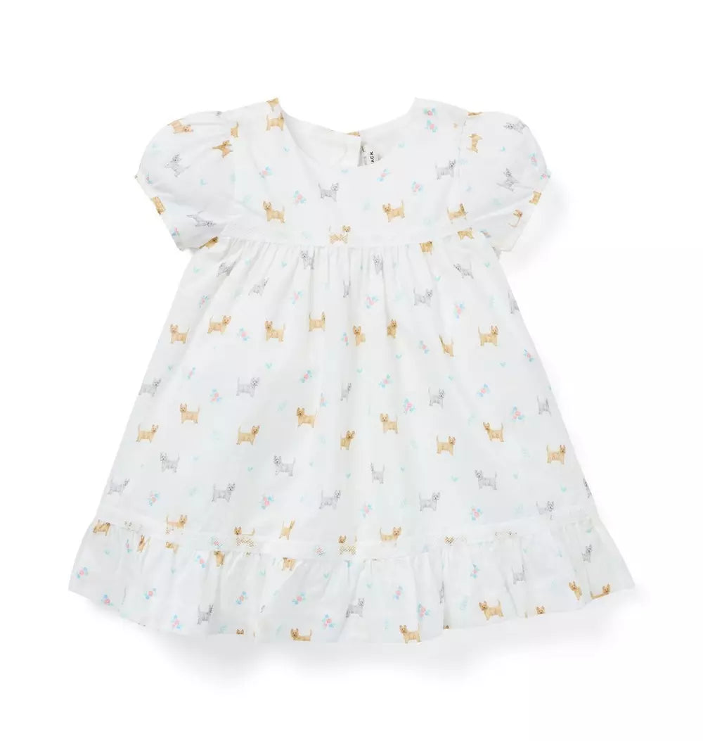 Janie & Jack Bebe Niña Vestido Dogs Ruffle Collar M/C White