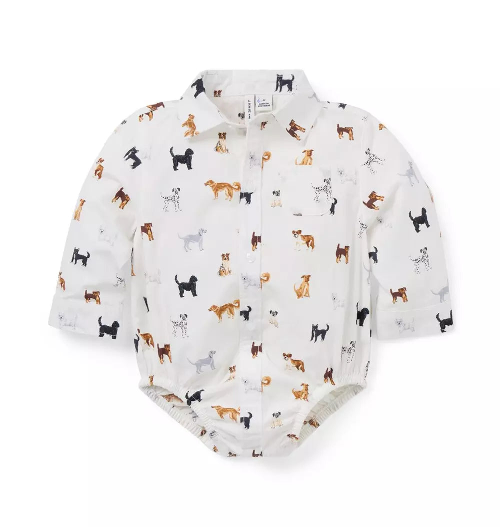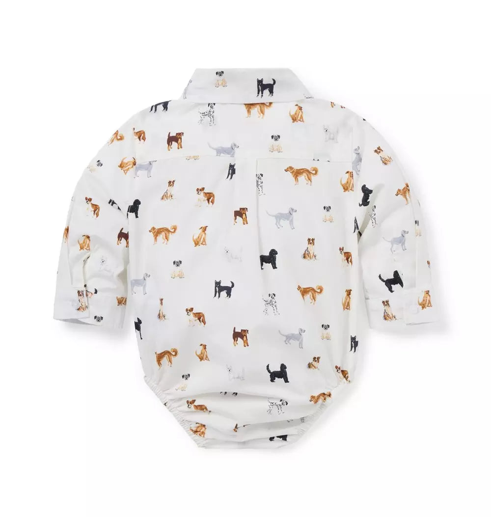 Janie & Jack Bebe Niño Body Dog Icons Collar M/L White
