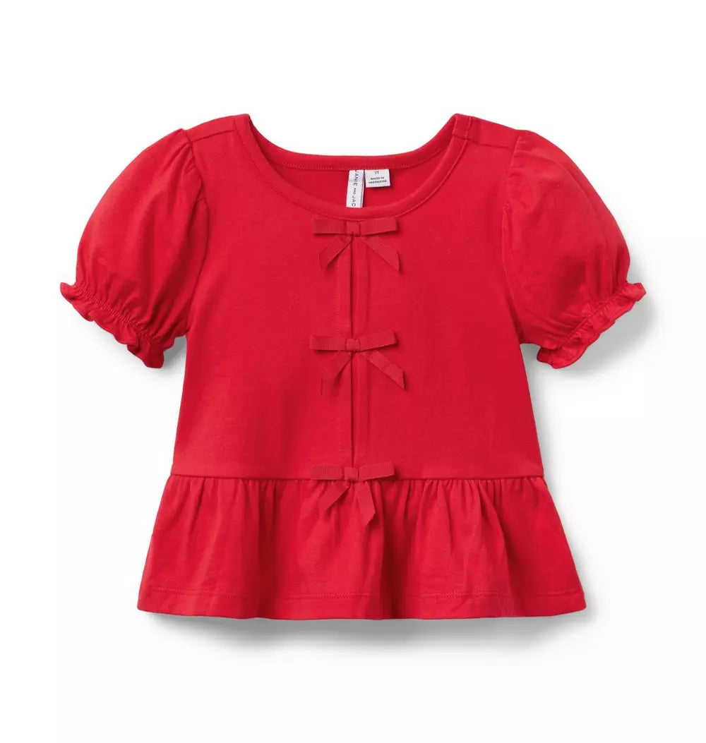 Janie & Jack Niña Tshirt Bow Peplum M/C Red