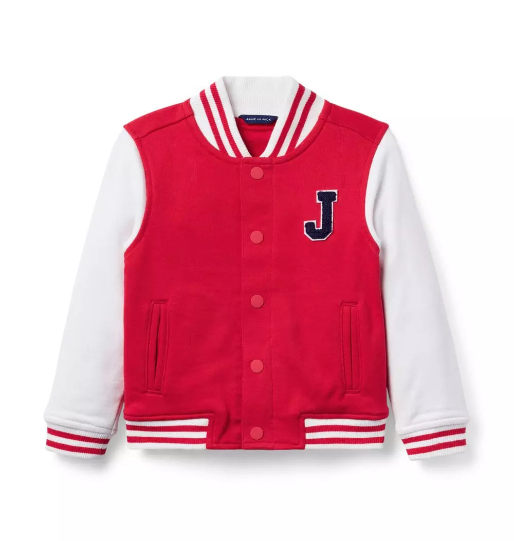 Janie & Jack Niño Abrigo Varsity Bomber Red