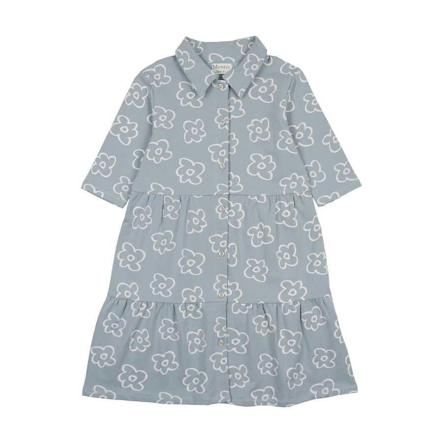 Maniere Niña Vestido Tiered Flower 3/4 Sleeve Blue