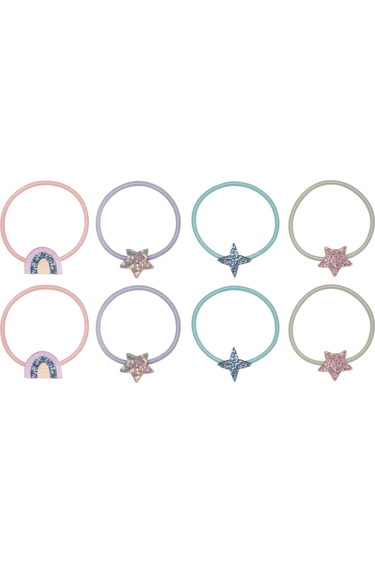 Cintas para el pelo con mini ponis de arcoíris y estrellas de Mimi & Lula. Haz que sean las estrellas de la fiesta con estos fantásticos ponis de arcoíris y estrellas. ¡Llévalos en pares, solos o incluso todos juntos! Son perfectos para hacer coletas. Presentan arcoíris y estrellas de tela acolchada en una mezcla de brillo metálico, fino y grueso.