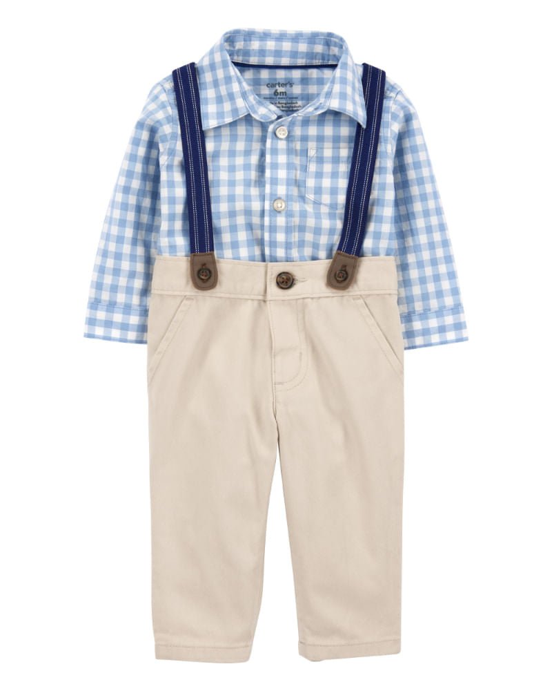 Carters Bebe Niño Conj. De Pantalon Blue Gingham Suspender