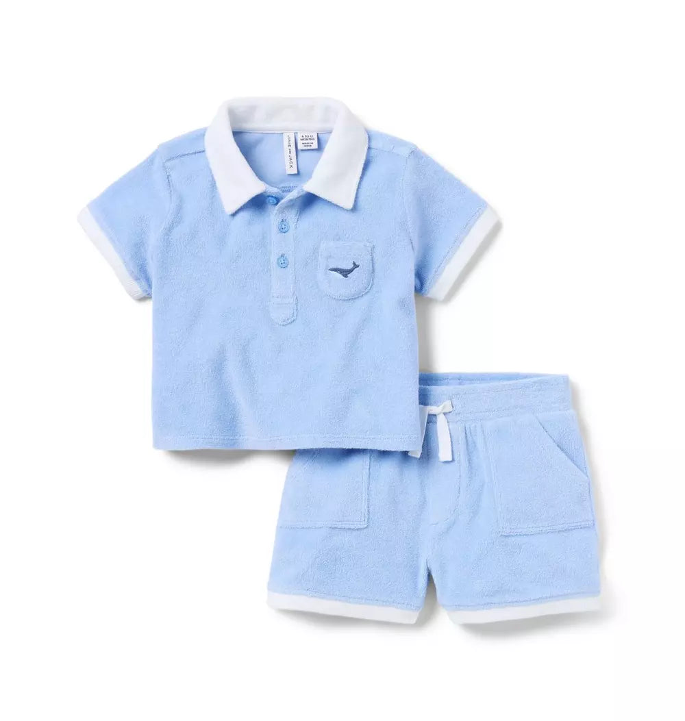 Janie & Jack Bebe Niño Conj. De Short Blue Terry Polo