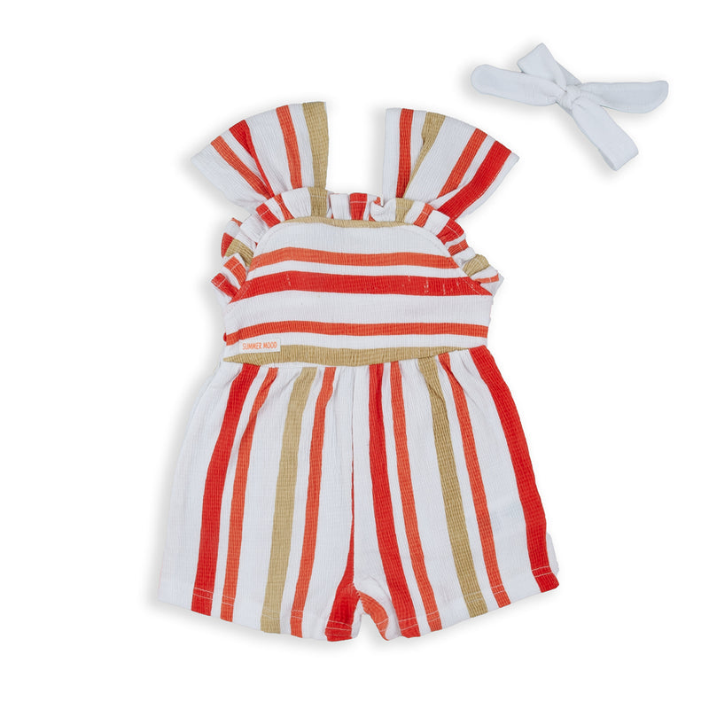 Baby Bol Niña Overol C/ Vincha Rayas Naranja