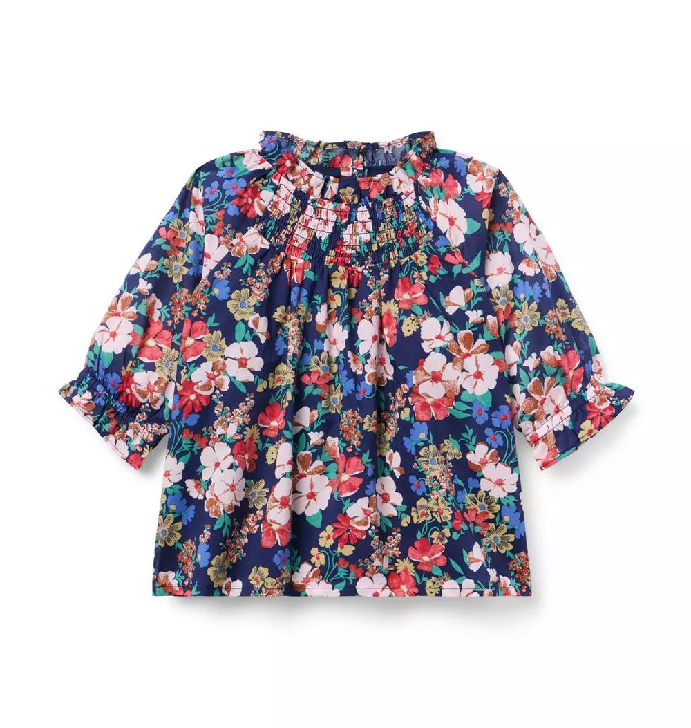 Janie & Jack Niña Blusa Floral Ruffle Smocked M/L Multicolor