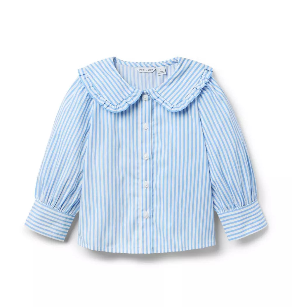 Janie & Jack Niña Camisa Striped Ruffle Collar M/L Blue