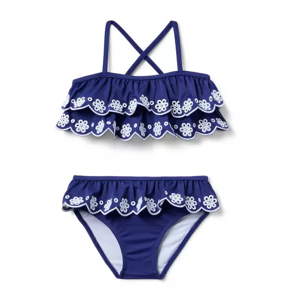 Janie & Jack Niña Vestido De Baño Eyelet Blue