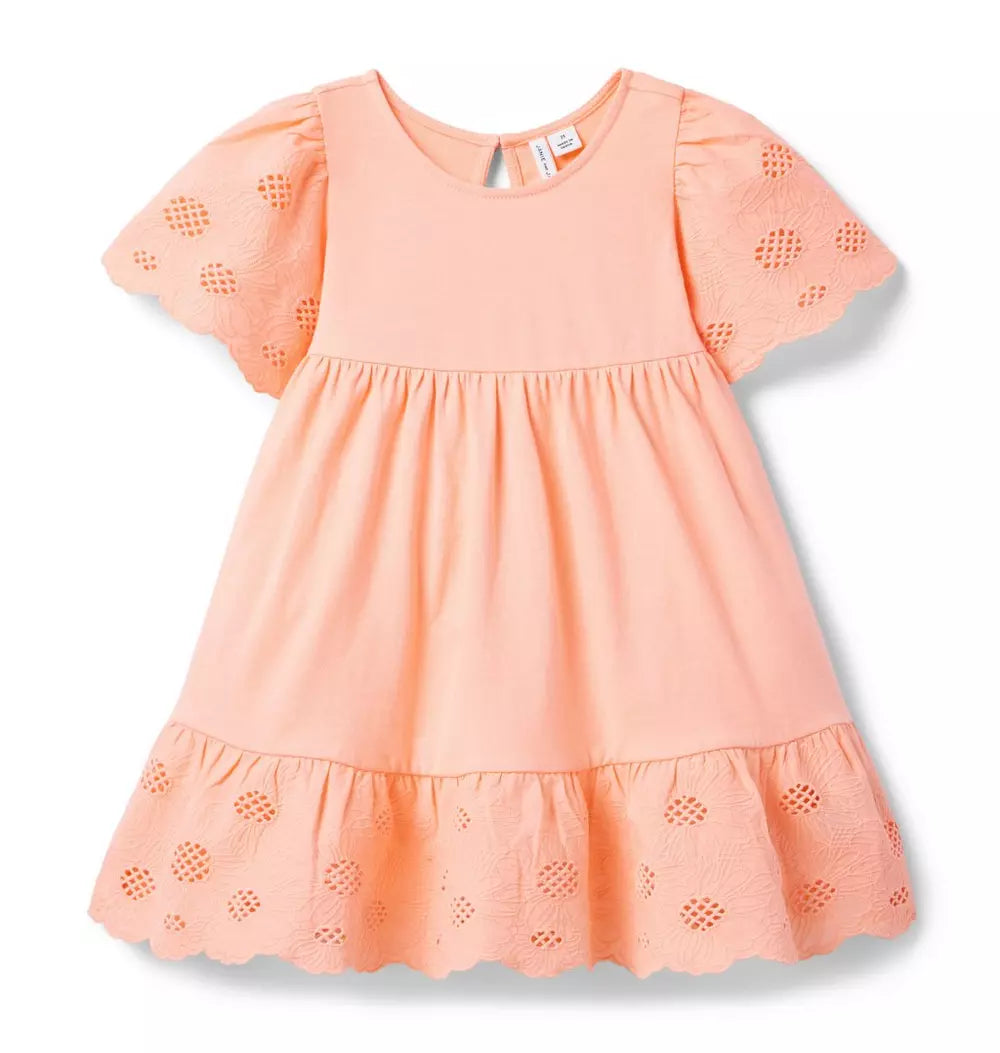 Un favorito para ocasiones formales o informales, nuestro vestido escalonado presenta flores bordadas con ojales en las mangas y el bajo. ¡Solo añade un día soleado!