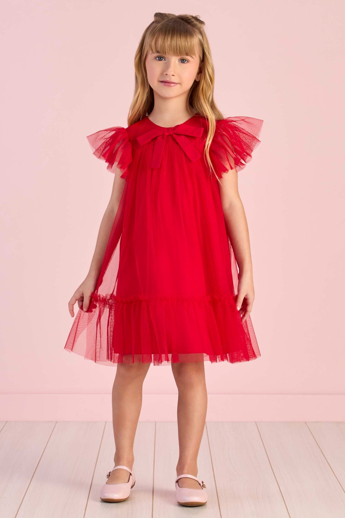 Deleita a mamá, abuela o a cualquiera que busque vestir a su pequeñín con un toque de delicadeza y diversión para ocasiones especiales con este hermoso vestido infantil de Mon Sucré. Hecho 100 % poliéster, presenta una capa de tul rojo que le aporta un encanto irresistible.