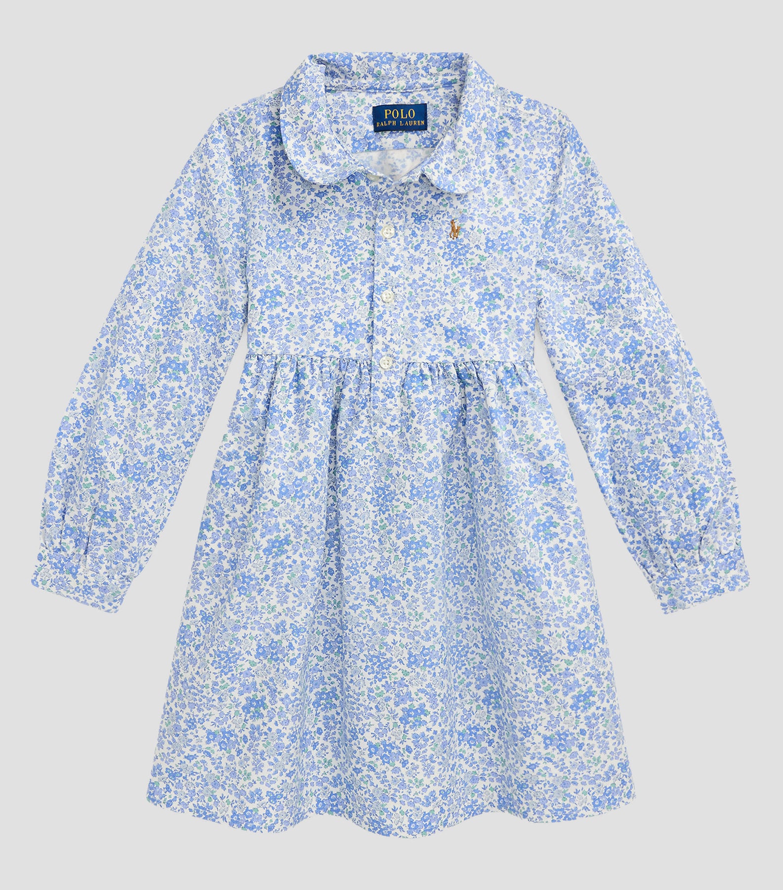 Ralph Lauren Niña Vestido Classic Oxford Carolan Floral Nevis Blue