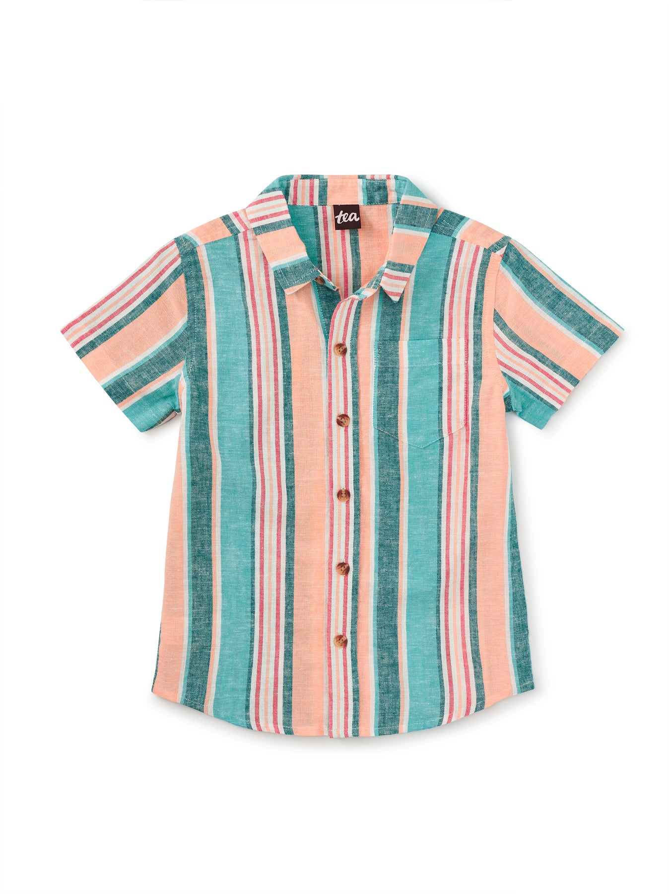 Tea Collection Niño Camisa Stripe Button Up Cyan