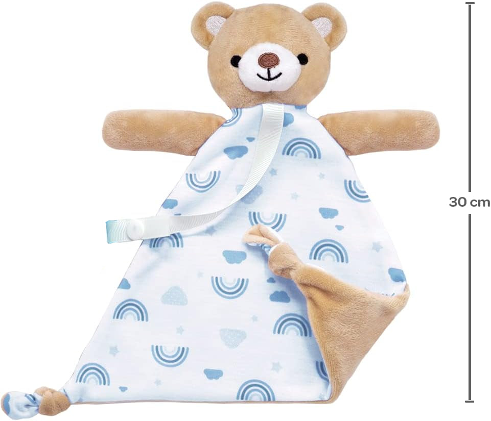 El osito con pinza para chupetes Blue Buba es el compañero ideal para que el bebé duerma. Con una pinza para chupetes, de felpa ligera y suave, proporciona una sensación de confort y seguridad durante el descanso de los más pequeños.