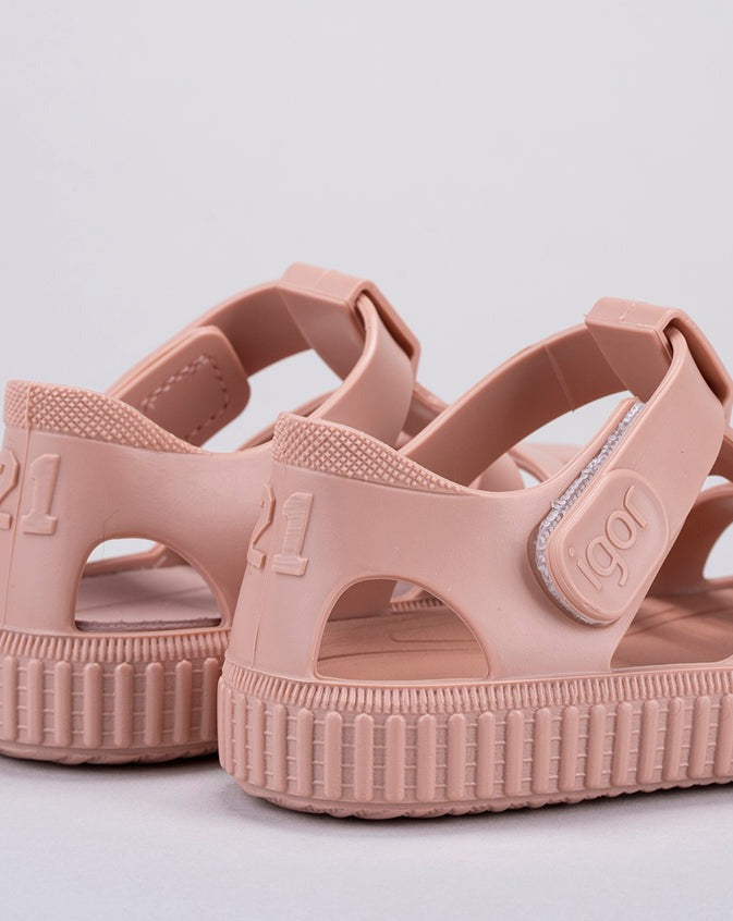 Sandalias deportivas para niños IGOR con acabado mate donde la suela trae el mismo color de la sandalia, perfectas para la playa, la piscina o para disfrutar del día a día con total comodidad. Su diseño en PVC inyectado en una sola pieza ofrece resistencia y flexibilidad, mientras que el cierre en velcro al tobillo permite un ajuste fácil y seguro.