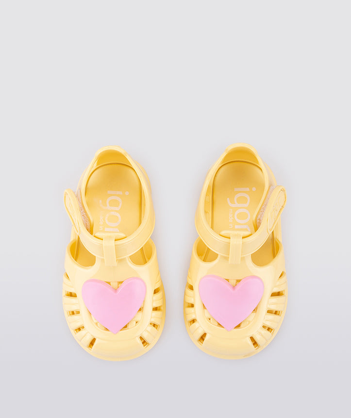Sandalias IGOR para niños, diseñadas en vibrantes colores, con un adorable corazón en el empeine, son perfectas para brillar en los días soleados. Su diseño cerrado protege los deditos, mientras que el sistema de cierre con velcro asegura un ajuste fácil y cómodo. Ligeras, resistentes al agua y súper flexibles, ideales para jugar sin parar en la playa, el parque o la ciudad.