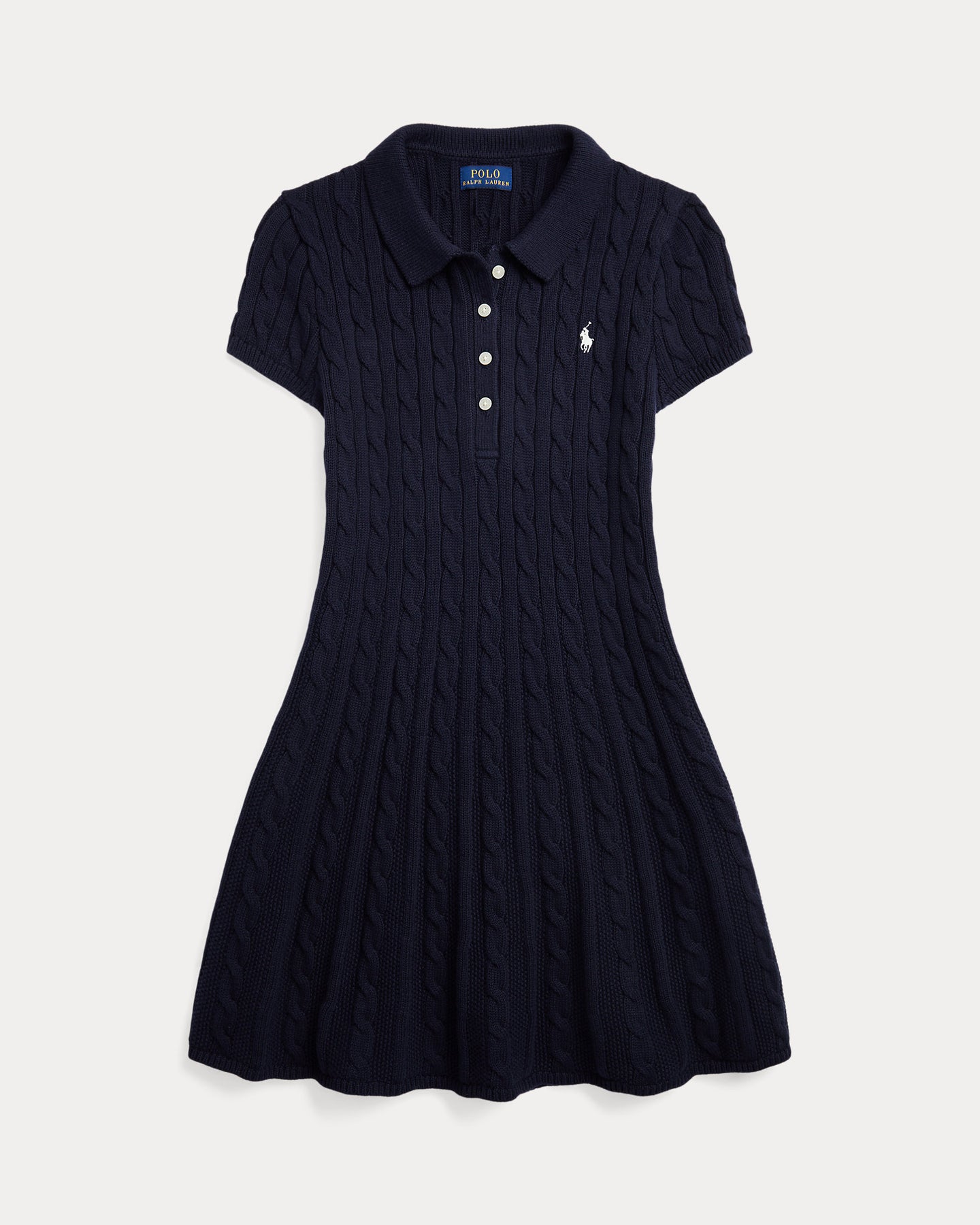 Ralph Lauren Niña Vestido Cotton Rl Navy W/ Prch Cream