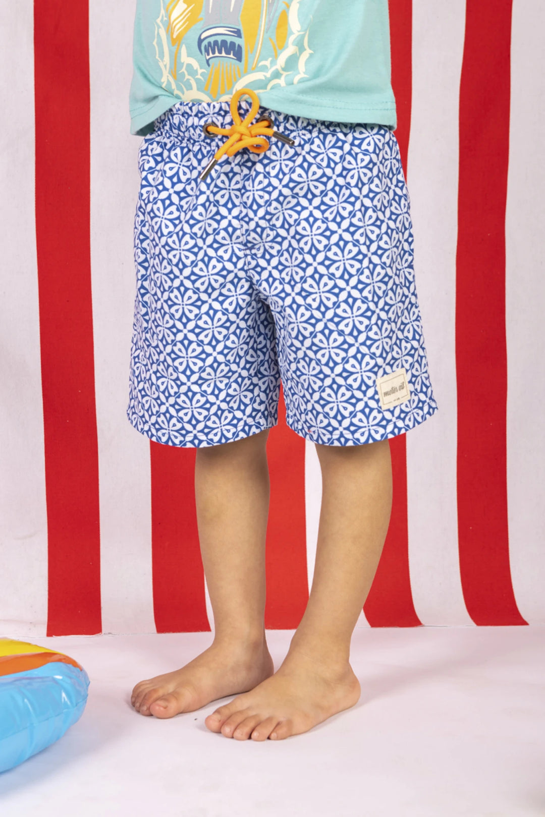 MOTOR OIL NIÑO VESTIDO DE BAÑO BLANCO/AZUL
