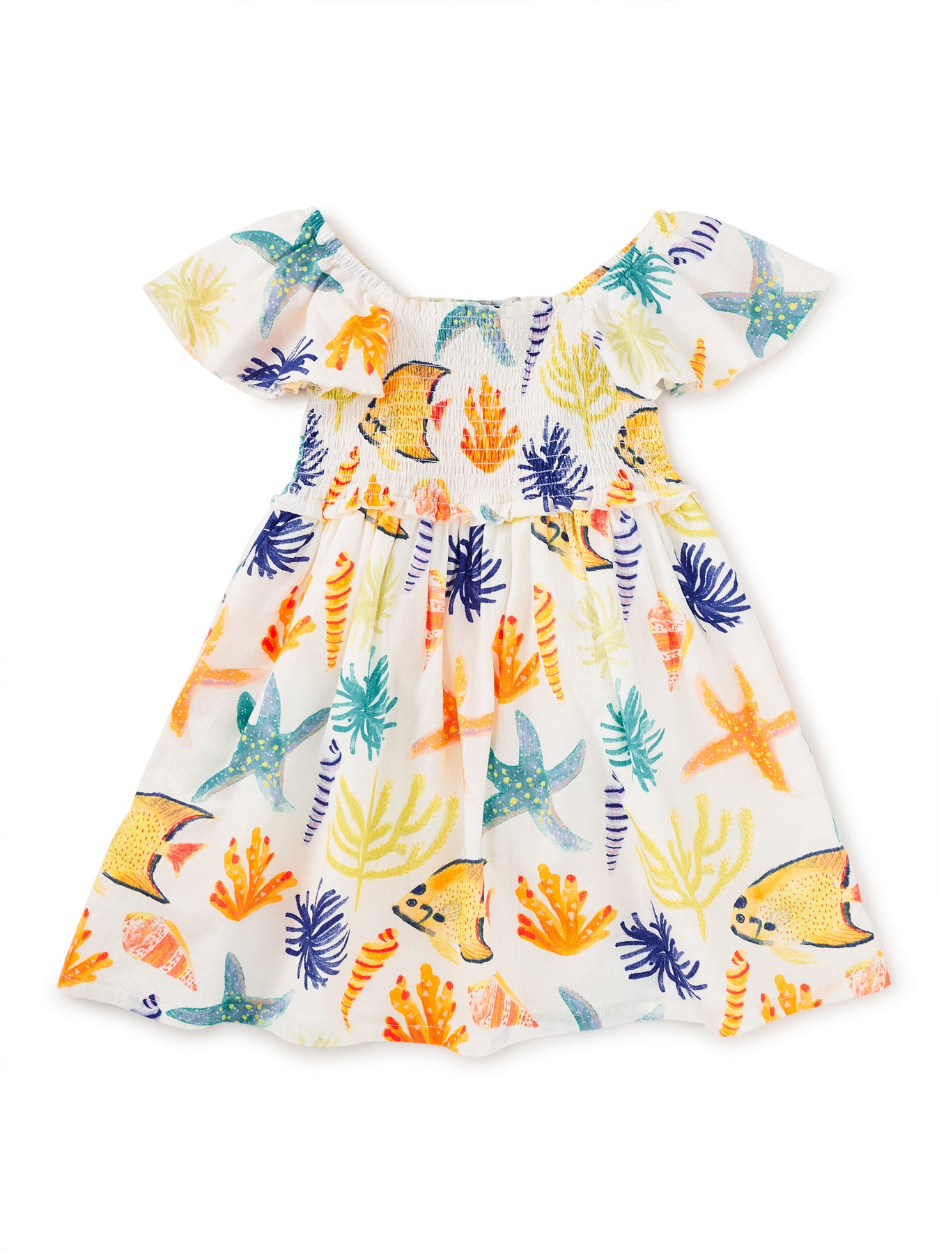 Tea Collection Niña Vestido Flutter Sleeve Watercolor Sea Life