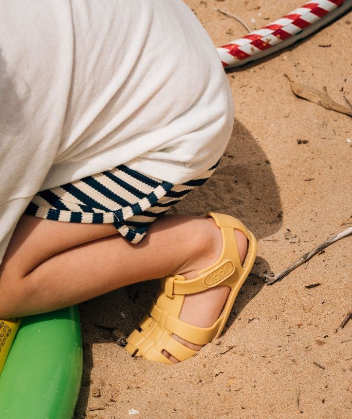 Sandalia diseñada en concepto barefoot medium, cero drop, flexible y blandita, fabricada con al menos un 50% de pvc reciclado libre de ftalatos y cierre adherente.