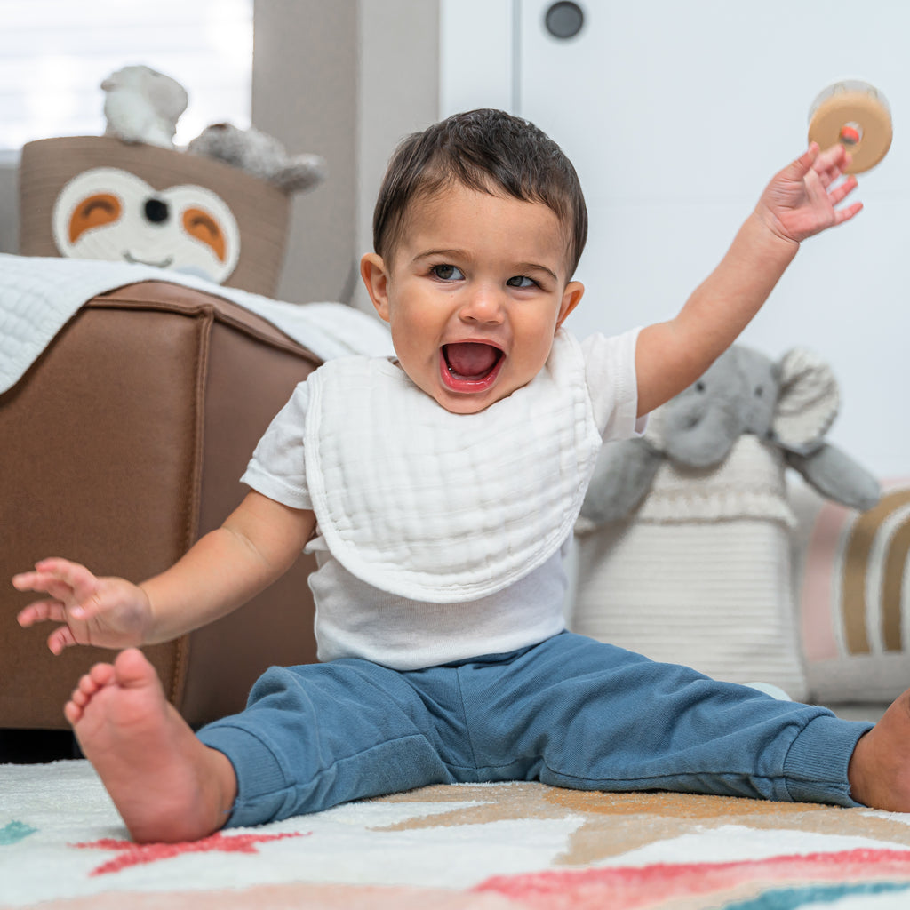 Mantenga a su bebé protegido de babas y derrames con los baberos bandana de algodón de muselina Comfy Cubs. Hechos 100% de muselina de algodón suave y delicado, estos baberos son cómodos y seguros para la delicada piel de su pequeño.
