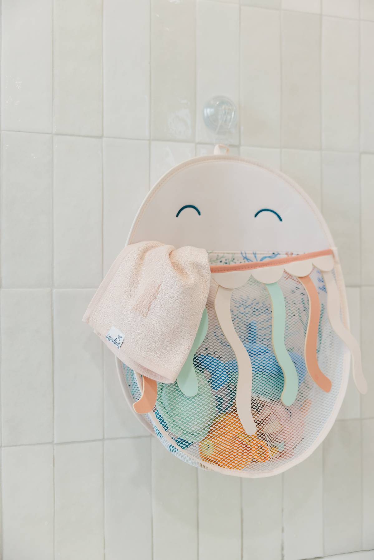 Almacenamiento inteligente para todos tus juguetes de baño. Diseño y funcionalidad se unen en esta bolsa de almacenamiento con personalidad. ¡Se cuelga fácilmente en la bañera para guardar todos tus juguetes mientras se secan! El soporte de malla extragrande ayuda a que todo se seque rápidamente, mientras que la abertura superior flexible facilita el acceso. Incluye ventosas para colgar en azulejos.