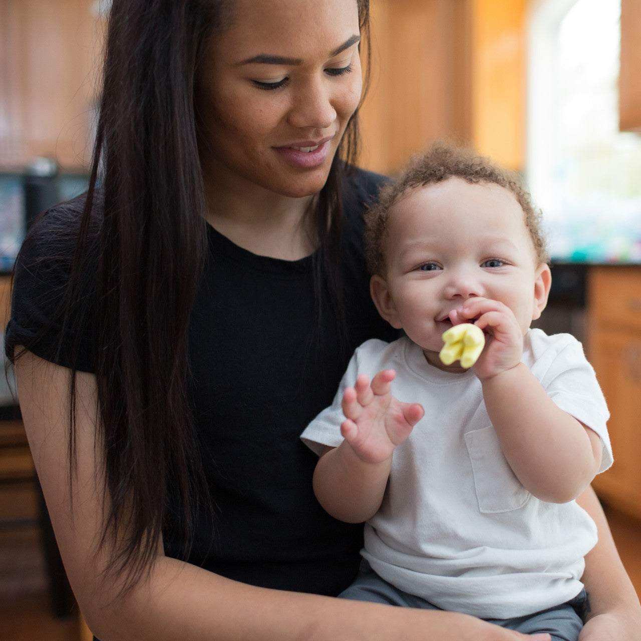 El cepillo de dientes para bebés y niños pequeños está fabricado con un material duradero pero suave, ideal para bocas sensibles.