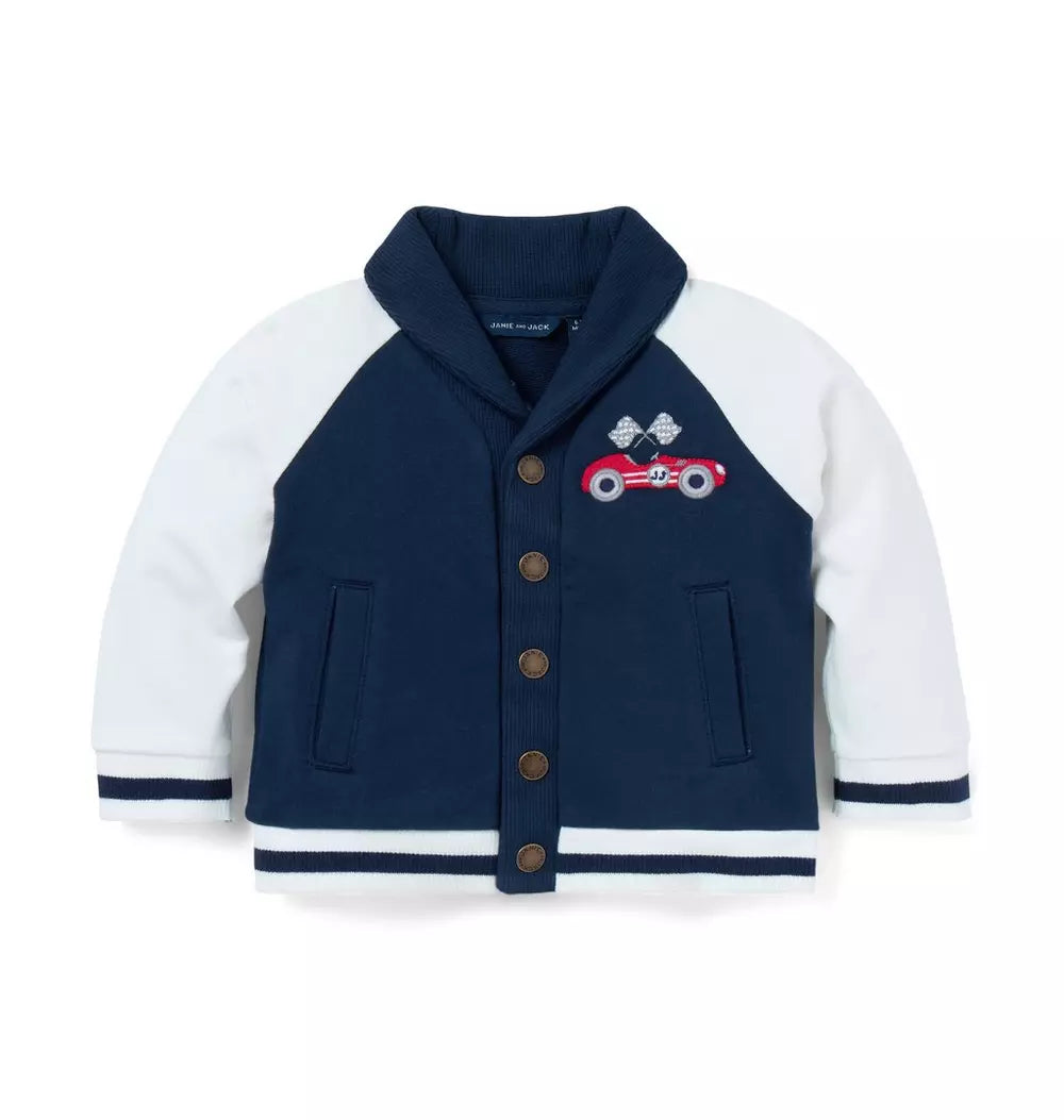 Janie & Jack Bebe Niño Body Race Car Icon Terry Shawl M/L Blue
