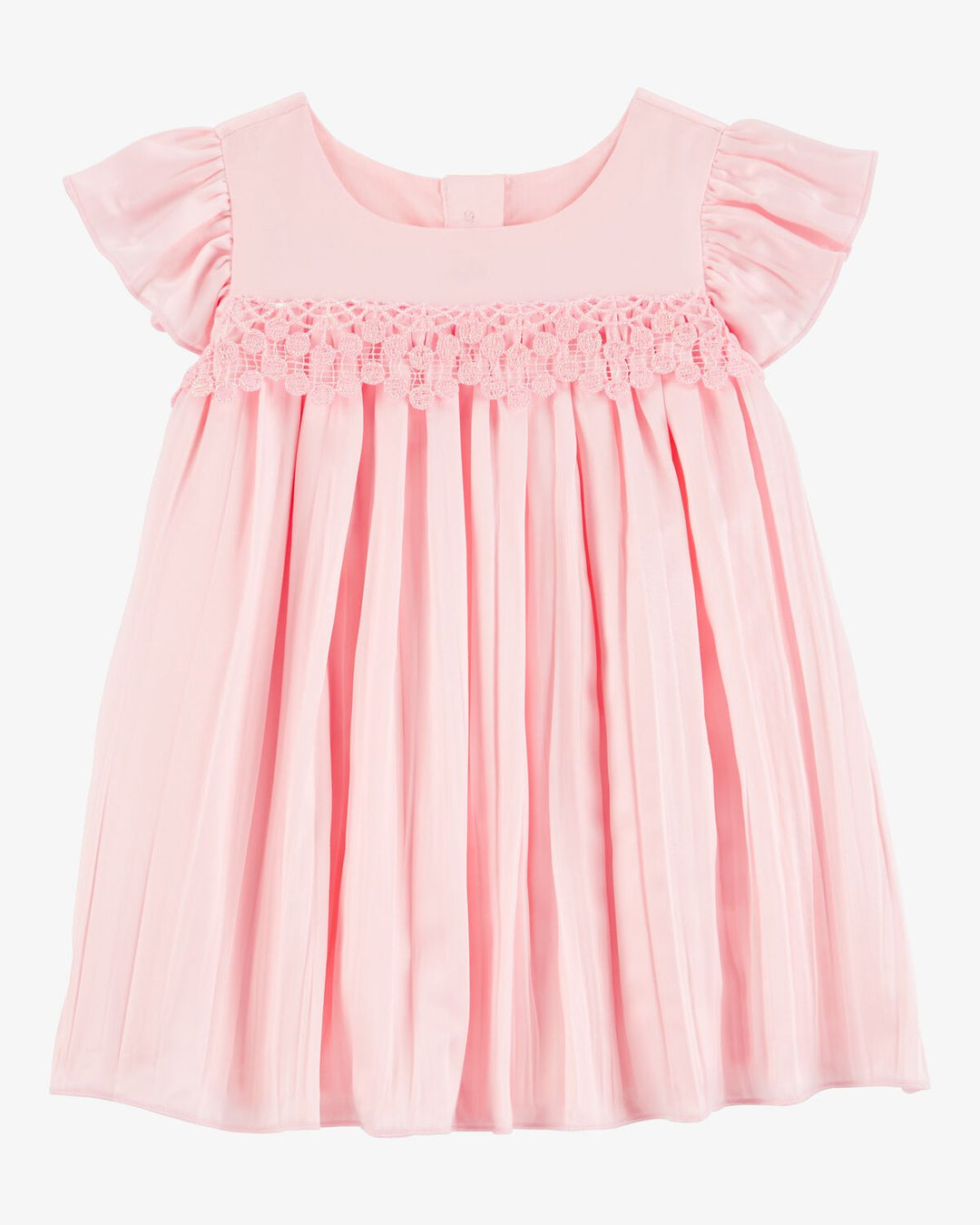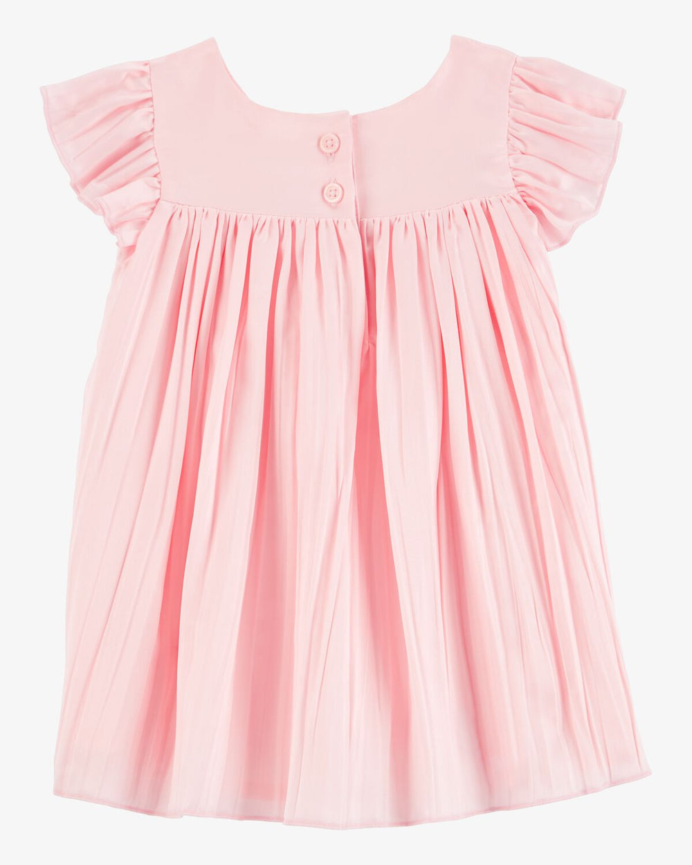 Este Vestido Es Perfecto Para Ocasiones Especiales Y Sesiones De Fotos, Con Mangas Con Vuelo, Falda Plisada Y Detalle De Encaje Metalizado En El Pecho. Además, Los Botones En La Espalda Permiten Cambiarse Fácilmente.