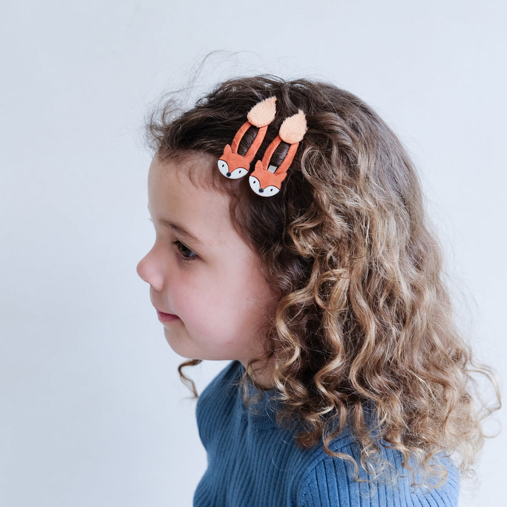 ¡Agrega un toque de zorro al cabello de tu pequeño con estos nuevos y súper lindos Foxy Clic Clacs! ¡Este par de amigos peludos seguramente lo harán destacar del resto!
