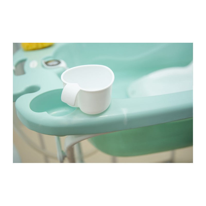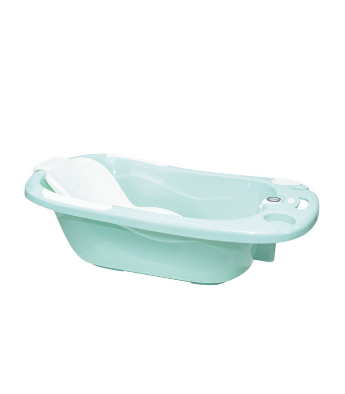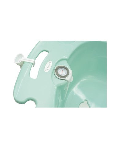 Práctica Cubeta Bañera Con Apliques Antideslizantes En Los Laterales Y Hamaca Extraíble. Tiene Un Disño Muy Funcional Gracias A La Cubeta Para Limpiar La Cabeza Del Bebé, El Departamento Para Productos Y El Termómetro Medidor De La Temperatura. Cuenta Además Con Una Válvula Para Vaciar El Agua Con Facilidad. *No Incluye El Soporte.