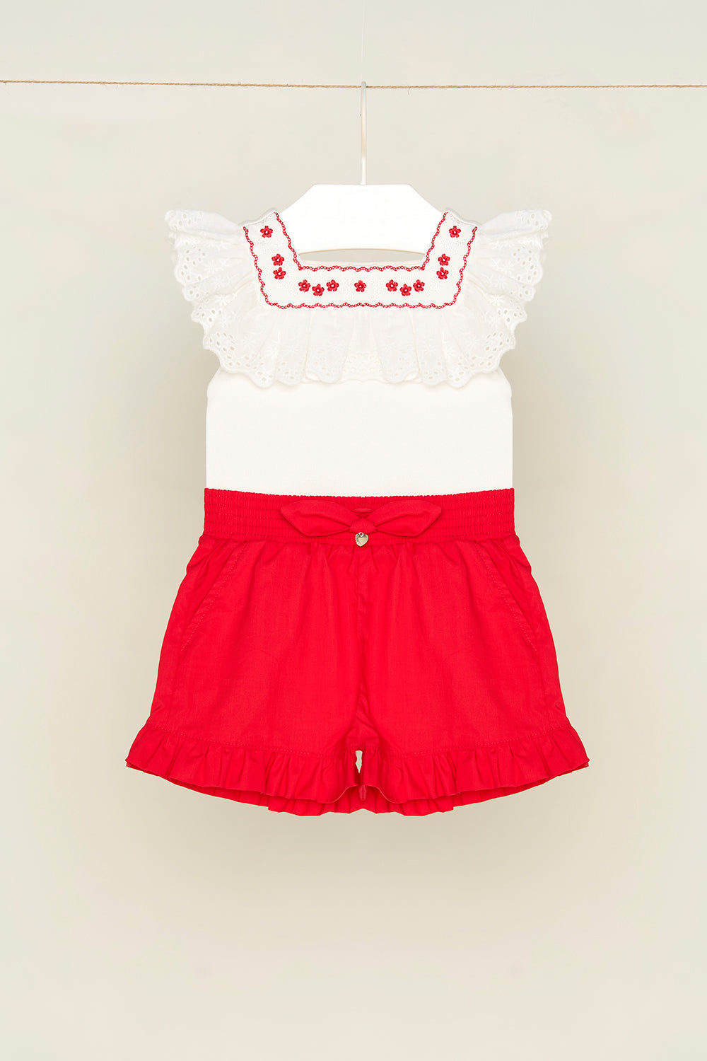PETIT CHERIE BEBE NIÑA CONJ. DE SHORT CELEBRACIÓN NATAL ROJO/BLANCO